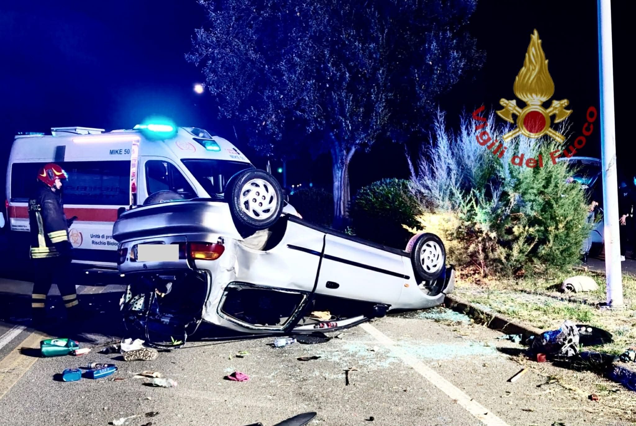 La squadra di pronto intervento dei Vigili del fuoco del distaccamento cittadino porto di Cagliari è intervenuta poco dopo la mezzanotte in via Lungo Saline a Cagliari, a seguito di un incidente stradale dove per cause da accertare, un’autovettura con cinque persone a bordo, si è ribaltata sulla sede stradale, urtando un lampione dell’illuminazione pubblica. I Vigili del fuoco hanno provveduto alla messa in sicurezza del veicolo e della sede stradale. Sul posto sono intervenute diverse ambulanze per soccorrere gli occupanti del veicolo. Si registrano cinque feriti, tutti soccorsi e trasferiti in ospedale dal personale medico sanitario del Servizio Territoriale di Emergenza del 118 con codice rosso. Sul posto presente la Polizia di Stato e la Polizia Locale di Cagliari per la gestione della viabilità stradale e per gli adempimenti di competenza. Sul posto è intervenuta la squadra dei tecnici per il comune di Cagliari che ha provveduto al ripristino della sede stradale. Un’altro incidente stradale sì è verificato successivamente qualche chilometro più avanti della stessa strada, all’altezza della rotatoria pressi ex Ospedale Marino, per un’altro incidente stradale dove per cause da accertare un’autovettura si è ribaltata sulla carreggiata. Si registrano due feriti lievi soccorsi dal personale sanitario del 118 , una donna trasferita in ambulanza in uno degli ospedali della città di Cagliari con codice giallo. Sul posto è intervenuta una squadra della centrale operativa del Comando dei Vigili del fuoco di Cagliari per la messa in sicurezza dell’autovettura e della sede stradale. Sul posto le forze dell’ordine di competenza per effettuare gli accertamenti e rilievi di legge.
