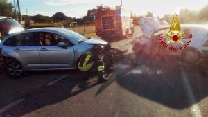 Incidente questo pomeriggio, attorno alle 17, sulla Sp8, strada che collega Sestu a Elmas: due auto, una di queste con impianto a Gpl, per cause in fase di accertamento, si sono scontrate. Una donna è rimasta ferita ed è stata trasportata dai sanitari del 118 all’ospedale. Sul posto sono intervenuti i vigili del fuoco della stazione di Cagliari per soccorrere gli automobilisti e mettere in sicurezza le vetture, una delle quali perdeva gas.