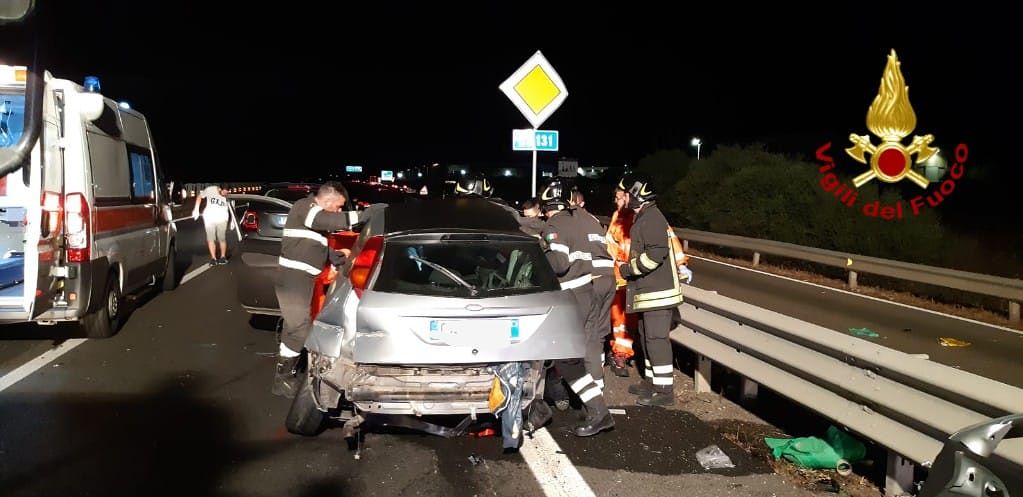 Nel corso della notte, intorno all’una, al km 18 della strada statale 131, in direzione nord all’altezza di Monastir, una Citroen Xsara Picasso condotta da un 50enne di Ussana ha urtato la barriera spartitraffico ed è stata poi tamponata da altri due veicoli che la seguivano: una Ford Focus condotta da un 59enne di Villamar, e una Fiat 500X, noleggiata da un turista francese.
