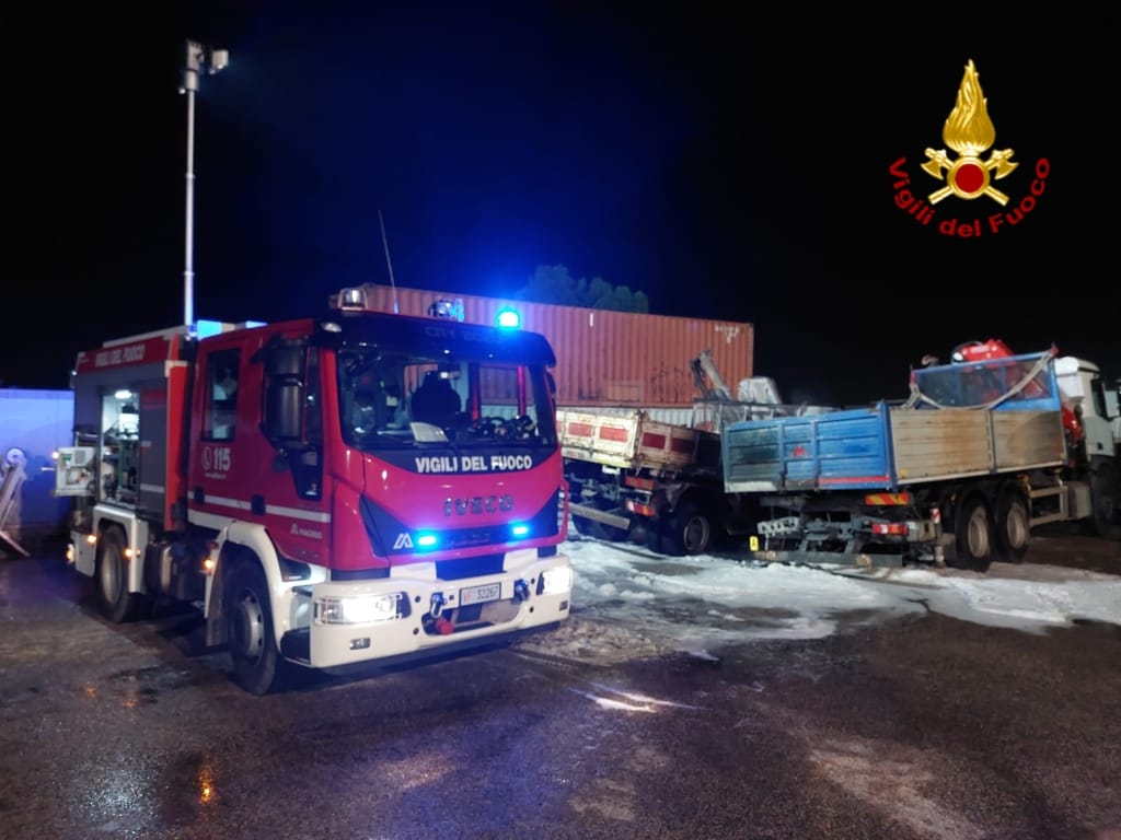 I vigili del fuoco del comando di Cagliari sono intervenuti nella notte nella zona industriale di Elmas per domare un incendio che ha coinvolto due camion. La squadra dei Vigili del fuoco ha prontamente circoscritto il rogo, evitando che si propagasse alle attrezzature presenti nell’area. Sul posto anche le forze dell’ordine per gli accertamenti di competenza. Le indagini sono in corso per determinare le cause dell’incendio: l’ipotesi al vaglio è che possa trattarsi di un atto doloso.