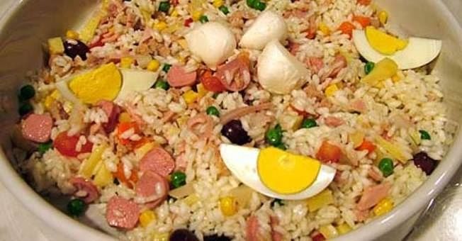 RISO INTEGRALE 70 g UOVO INTERO 35 g MOZZARELLA FRESCA 20 g PROSCIUTTO COTTO MAGRO 15 g PISELLI FRESCHI 15 g PEPERONI ROSSI 35 g POMODORI 20 g TONNO AL NATURALE 15 g CETRIOLINI SOTT’ACETO 15 g Preparazione LESSARE IL RISO, SCOLARLO E PASSARLO VELOCEMENTE SOTTO L’ACQUA CORRENTE FREDDA QUINDI PULIRE E LAVARE LE VERDURE E TAGLIARLE FINEMENTE, COSI’ IL PROSCIUTTO COTTO, LA MOZZARELLA E IL TONNO, L’UOVO A PICCOLI SPICCHI. CONDIRE IL RISO.