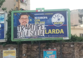 A Palermo, nella notte appena trascorsa, una scritta intimidatoria che recita “Traditore della Sicilia” è comparsa in un manifesto elettorale di Igor Gelarda, candidato della Lega alle europee del 26 maggio nel collegio Sicilia e Sardegna, già responsabile regionale enti locali del partito e capogruppo in Consiglio comunale nel capoluogo siciliano.