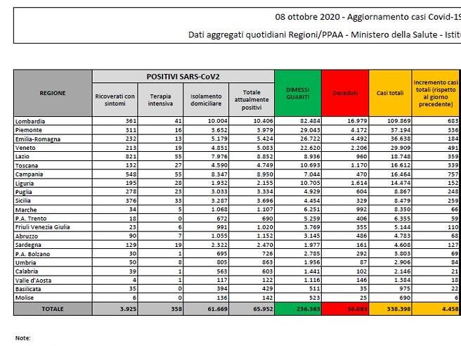 Italia, super nuovo balzo del Coronavirus: ancora quasi 800 contagi in più rispetto a ieri, e sono circa duemila in più rispetto a due giorni fa. 127 nuovi positivi in Sardegna. Boom di contagi in Campania (757), il virus punta verso Sud. Oggi in campo nazionale i nuovi positivi sono infatti 4458, contro i 3678 di ieri, ma con un numero record di tamponi effettuato, oltre 128mila. I morti sono invece in calo, 22 contro i 31 di ieri. Dati ancora sotto controllo ma che hanno portato il governo Conte a imporre l’obbligo delle mascherine anche all’aperto.