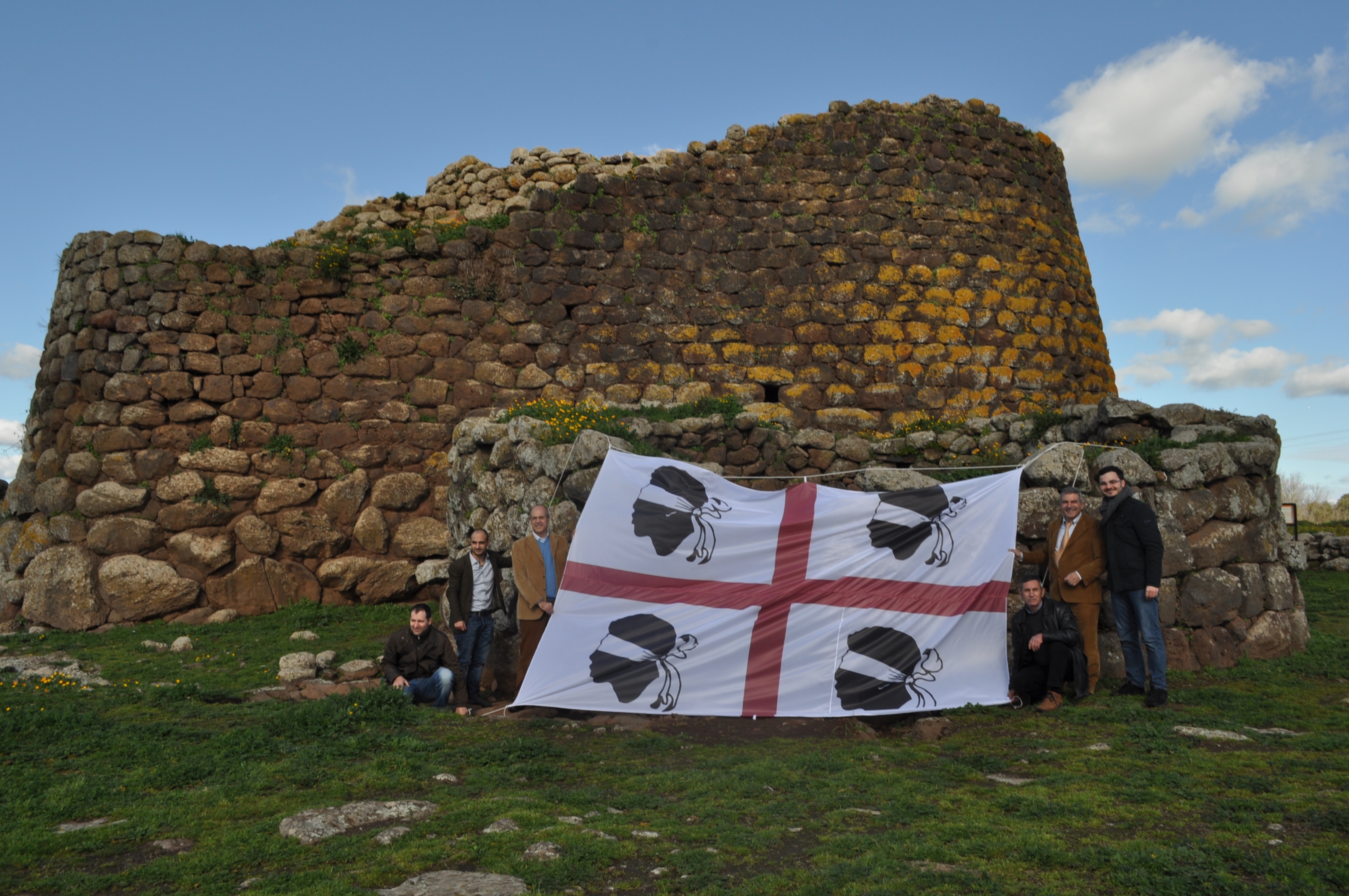 Una grande bandiera dei Quattro Mori fissata alla base del Nuraghe Losa. In questo modo i militanti dell’Italia dei Valori hanno voluto riparare questa mattina al torto ricevuto cinque anni fa dalla Sardegna intera quando, esattamente nello stesso luogo, il vessillo fu sciaguratamente consegnato a Silvio Berlusconi. La manifestazione – seguita da tanti turisti incuriositi – è stata mantenuta volutamente lontana da Cagliari, dove nelle stesse ore Berlusconi partecipava a una manifestazione elettorale, per evitare qualsiasi problema all’ordine pubblico e strumentalizzazione.