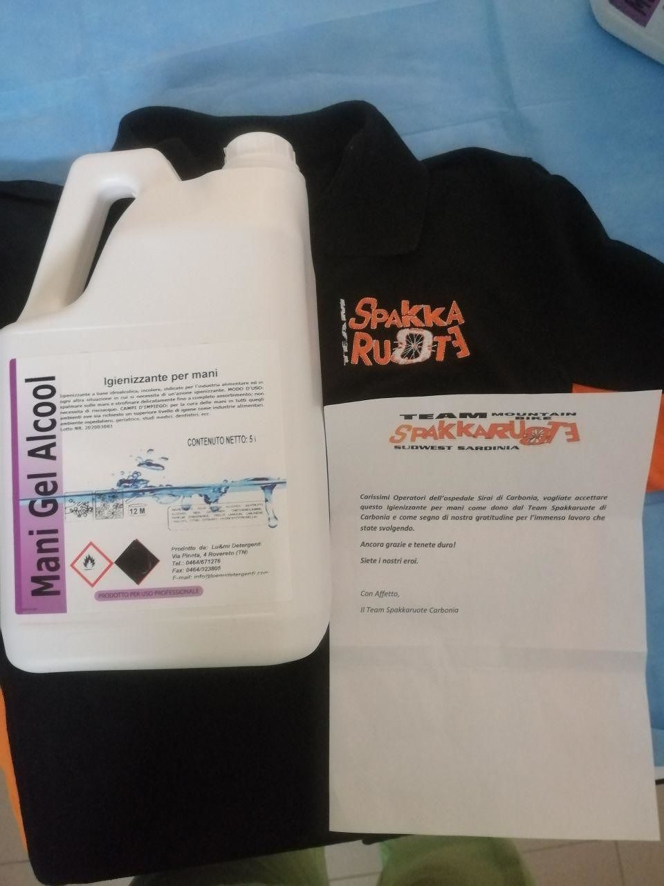 “L’Asd Team Spakkaruote ha donato al Presidio Ospedaliero Sirai due taniche da 5 litri di gel igienizzante per le mani;100 tute protettive sono state donate ieri mattina su meritoria iniziativa dell’imprenditore Luigi Bardi; un gruppo composto da 65 mamme residenti in vari paesi del Sulcis ha realizzato autonomamente circa 500 mascherine protettive donate ieri sera – tramite il Centro Operativo Comunale di Protezione Civile – ai medici del nostro Ospedale; la rappresentanza sindacale unitaria dell’azienda RWM di Domusnovas si è messa in contatto con il Centro Operativo Comunale di Protezione Civile per concordare le modalità e le tempistiche di consegna di 60 mascherine da distribuire alle Guardie Mediche che operano nel territorio comunale”.