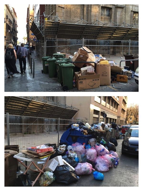 Guardate come si presentano oggi le strade alla Marina, in pieno centro storico: cumuli di rifiuti di ogni genere, pedoni obbligati a slalom improvvisati per evitare liquami, odori nauseabondi e insetti. Terminato lo sciopero degli addetti ai servizi ecologici i rifiuti sono ancora lì, in attesa di essere portati via. Non un bello spettacolo, inutile dirlo.
