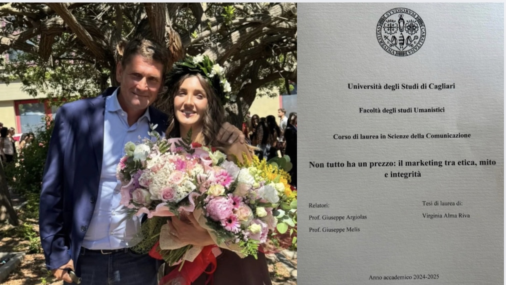 “Il lavoro esplora il marketing come linguaggio simbolico e dispositivo culturale, analizza la figura di Gigi Riva come esempio di coerenza e integrità, e approfondisce l’esperienza educativa della Scuola Calcio Gigi Riva come spazio di trasmissione di valori alle nuove generazioni.Durante la discussione, Virginia ha mostrato un breve video in cui il nonno — sì, quel Gigi Riva — parlava del suo rapporto con la Sardegna. Un momento di grande intensità emotiva.