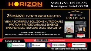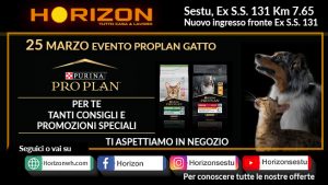 Horizon organizza, in collaborazione con Nestlè Purina, tre imperdibili giornate promozionali dedicate ai nostri amici a 4 zampe. Si partirà il 25 marzo con un evento dedicato ai nostri amati felini. I cani saranno invece i protagonisti degli eventi programmati per il 29 aprile e per il 24 giugno. Durante le giornate promozionali Purina Pro Plan, non mancheranno le promozioni speciali e i consigli personalizzati.