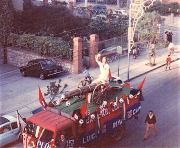Primavera millenovecentosettanta, Cesare Paci, con al suo fianco il fratello Marco, guida la sfilata con il carro (in foto) predisposto dalla GIOC che trasporta un evidente riferimento al tre volte capocannoniere Riva. L’indimenticabile Gianni Brera diede a Riva il soprannome di: Rombo di Tuono. Da allora siamo divenuti tutti “GigiiiiiRivaaaacannoniere”; la storia la conosciamo, inutile ripeterla, se non con le parole del giornalista: Gigi Riva l’ultimo hombre vertical, lui lombardo non tradì il suo popolo, il popolo sardo rimanendo nell’isola nonostante offerte di ingaggio mirabolanti.