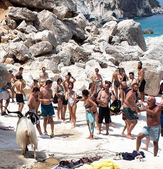“Come per una vera star, i turisti attendono la discesa di una capra a Cala Goloritzè, per il bagnetto pomeridiano…” scrive la nota pagina facebook l’Eco di Barbagia che ha condiviso la foto strappando migliaia di like.