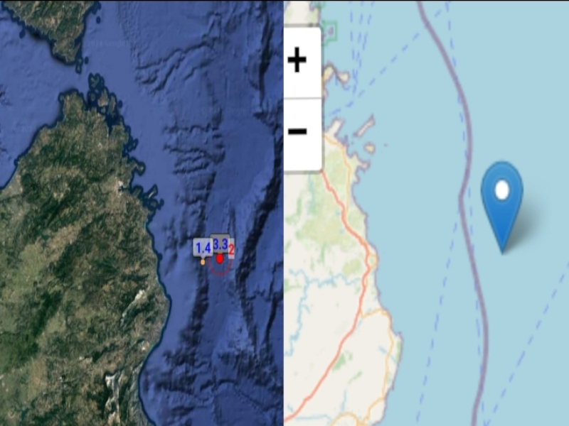 Due piccoli terremoti sottomarini registrati, poche ore fa, al largo della costa nord orientale della Sardegna: “La Terra è sempre in movimento”. A darne notizia il geologo Luigi Sanciu che rassicura: “Nulla di preoccupante e nessun rischio tsunami data la bassa magnitudo, 1.4 e 3.3”. Il terremoto più “intenso”, quello di magnitudo ML 3.3, è stato localizzato 61 Km a E di Olbia, esattamente alle ore 11:03:32 (UTC +02:00) ora italiana, con coordinate geografiche (lat, lon) 40.6770, 10.1460 ad una profondità di 19 km. Il terremoto è stato localizzato dalla Sala Sismica INGV-Roma.