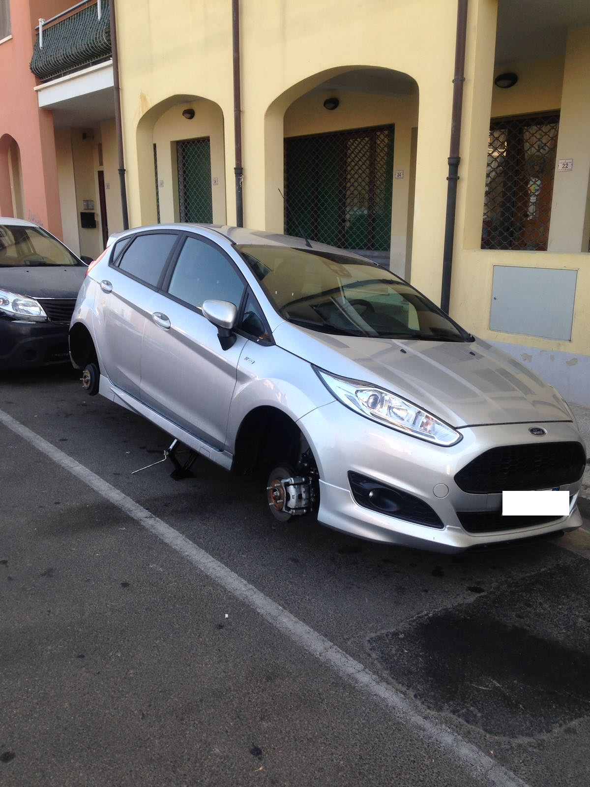 La segnalazione arriva dai residenti di via Paolo Borsellino, a Quartello, dove questa notte secondo una prassi ormai in uso da molto tempo, sono state asportate tutte e quattro le ruote da un’auto in sosta lungo la strada.