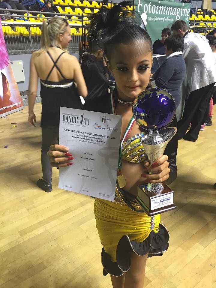 Federica Cocco, bimba di 11 anni di Selargius, nel gradino più alto del podio del campionato mondiale di latino show che si sta svolgendo a Torino, dal 5 all’8 novembre. La piccola campionessa ha stravinto arrivando prima nella sfida di ballo. Soddisfatti dell’importante risultato i maestri della Mooving Dance di Selargius, Claudio Artizzu e Veronica Toro che affermano “questo è l’inizio di un lungo percorso ricco di soddisfazioni”.