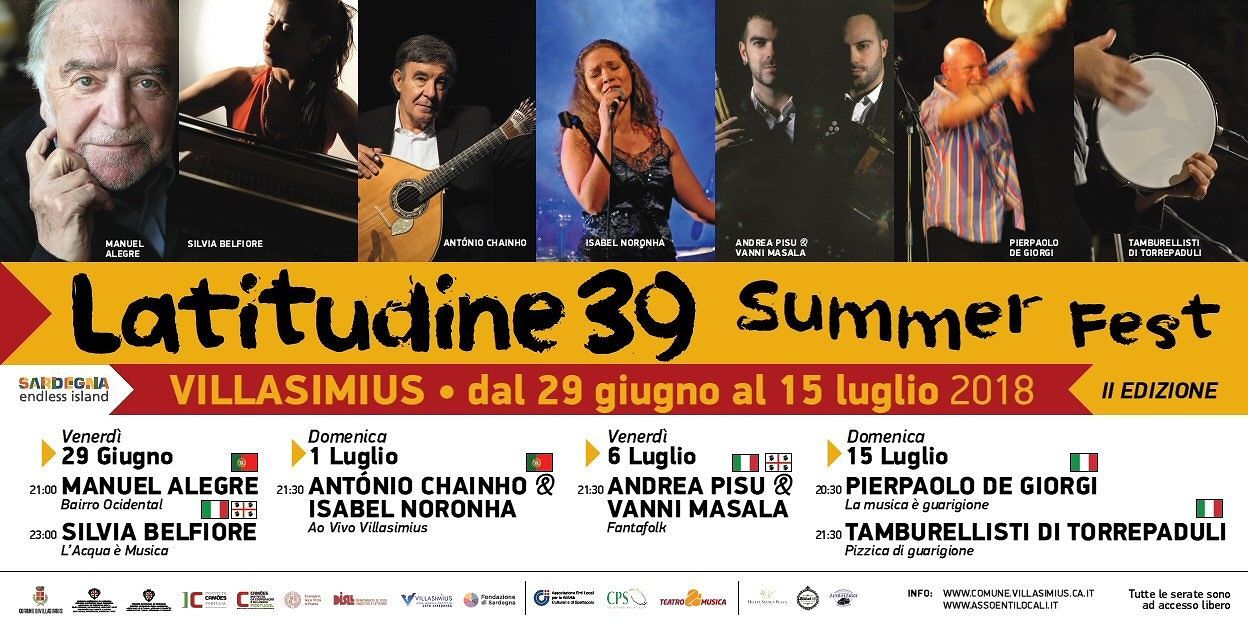 Latitudine 39 è realizzato con il sostegno della Fondazione di Sardegna e delle attività economiche di Villasimius. Ha ricevuto i prestigiosi patrocini dell’Instituto Camões Portugal, dell’Università di Padova e del suo Dipartimento di Studi Linguistici e Letterari.