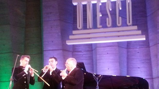 Applausi per il maestro Luigi Lai che ha inaugurato il palco dell’Unesco di Parigi. Per la prima volta, hanno debuttato le launeddas in occasione dell’evento “La Musique, la Culture, Les Traditions d’une ile dans la Mèditerranée: La Sardaigne”, organizzato dall’Associazione Sardegna in Musica e dall’Accademia Internazionale della Musica di Cagliari, da un anno partner dell’Unesco. E applausi anche per la successiva esecuzione accompagnato da Roberto Tangianu e Fabio Vargiolu davanti a una platea di vip, autorità e stampa internazionale in cui si distingue l’eleganza di Claudia Cardinale.