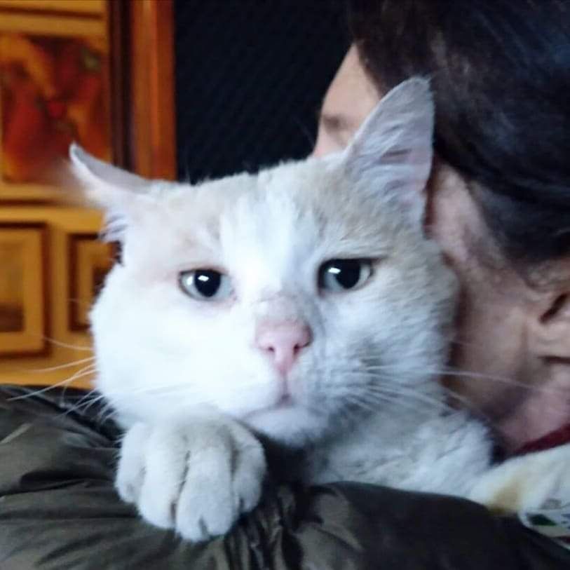 Adesso sta bene e desidera tanto una persona che gli dia quell’amore che è in grado di dare, di una dolcezza disarmante appena riceve le carezze si addormenta al suono delle sue fusa.
