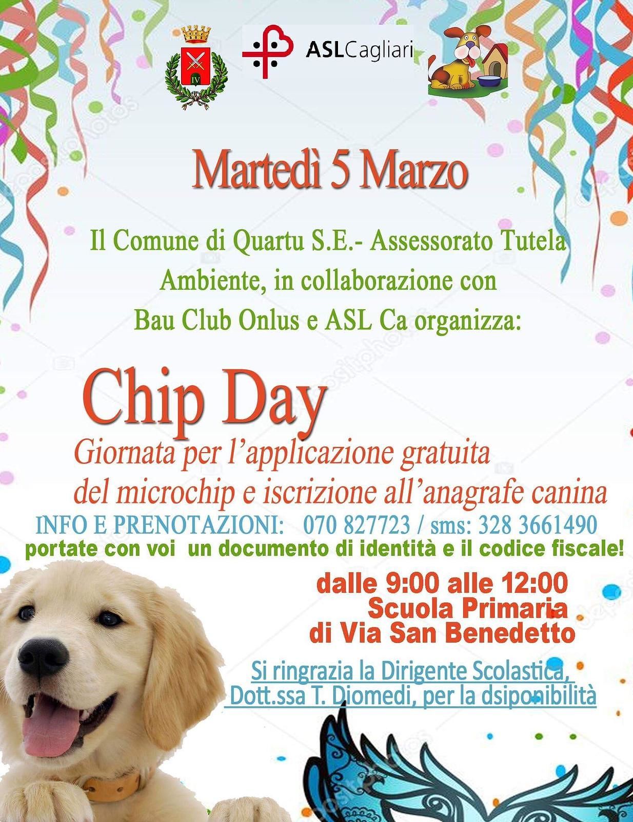 Nuovo appuntamento con il Chip day a Quartu il prossimo 5 marzo. Prosegue infatti la campagna per la microchippatura degli animali domestici avviata da tempo dall’Amministrazione comunale. Visto il successo riscontrato nei precedenti appuntamenti, anche in questo caso si prevede già un notevole afflusso.
