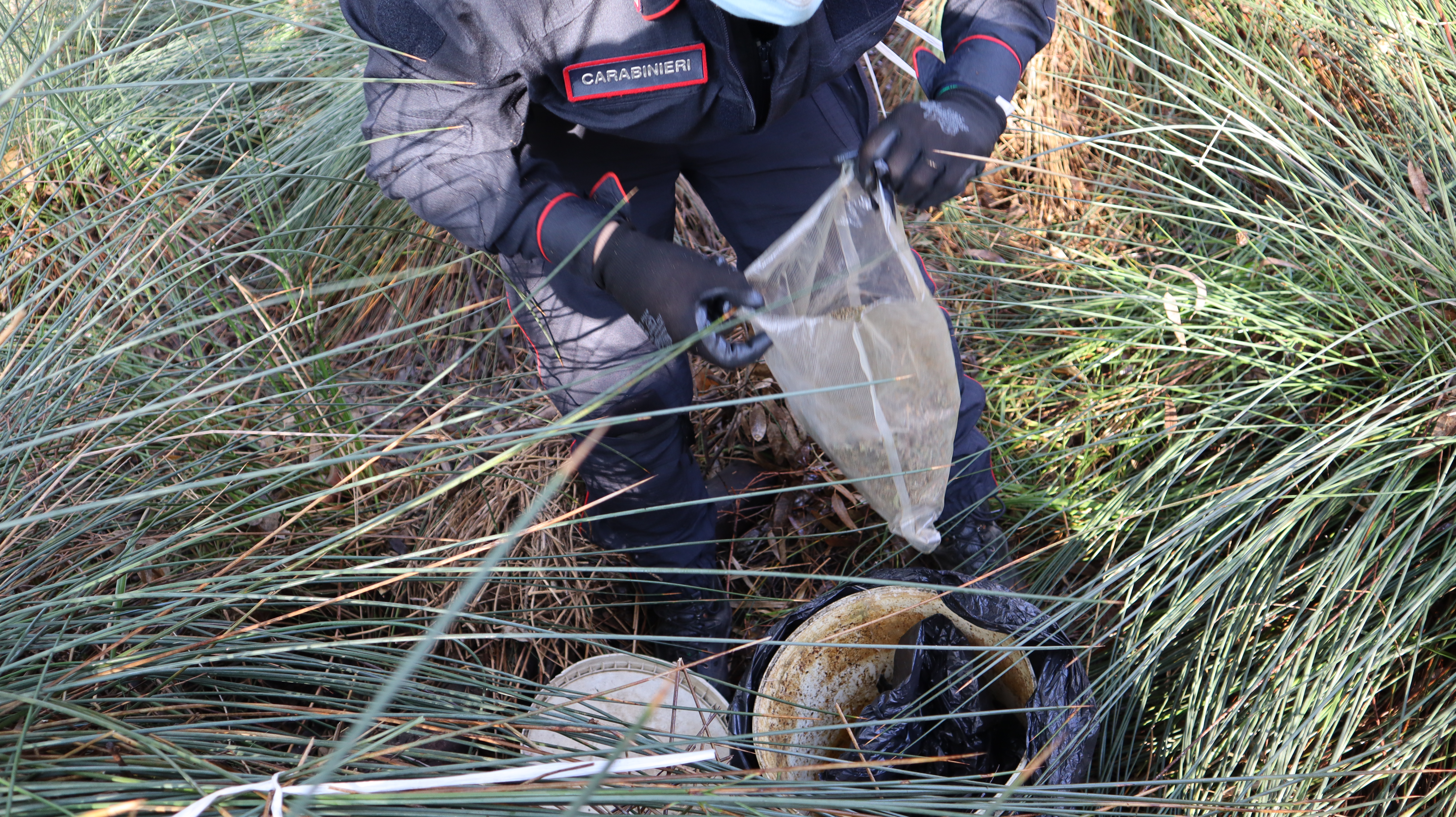 Numerosi bidoni contenenti marijuana per sei chili e diversi panetti di hashish per un peso di circa 3 etti nascosti tra la fitta vegetazione. E’ quanto è stato ritrovato dai Carabinieri della Compagnia di Lanusei, dal personale dello Squadrone Eliportato Cacciatori di Sardegna e dal Nucleo Cinofili di Abbasanta, nel corso di uno dei servizi volti alla ricerca di esplosivi e sostanze stupefacenti, in località Sa Piana, nel Comune di Lotzorai, in Ogliastra.