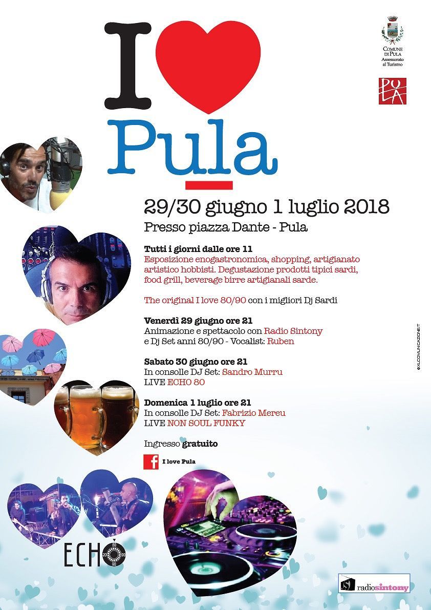 Da venerdì 29 giugno sino a domenica 1 luglio, il tour targato “I love Music 80/90” farà tappa a Pula, in Piazza Dante, con la manifestazione “I love Pula”.