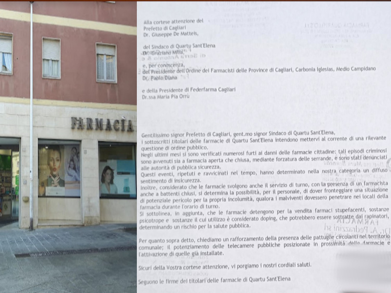 Le richieste? Due, molto semplici: “Più pattuglie e il potenziamento delle telecamere”. A rispondere alla missiva spedita via email qualche giorno fa, sinora, è stato solo il sindaco Graziano Milia: “I farmacisti di Quartu mi hanno chiesto un incontro, da parte mia massima disponibilità”.