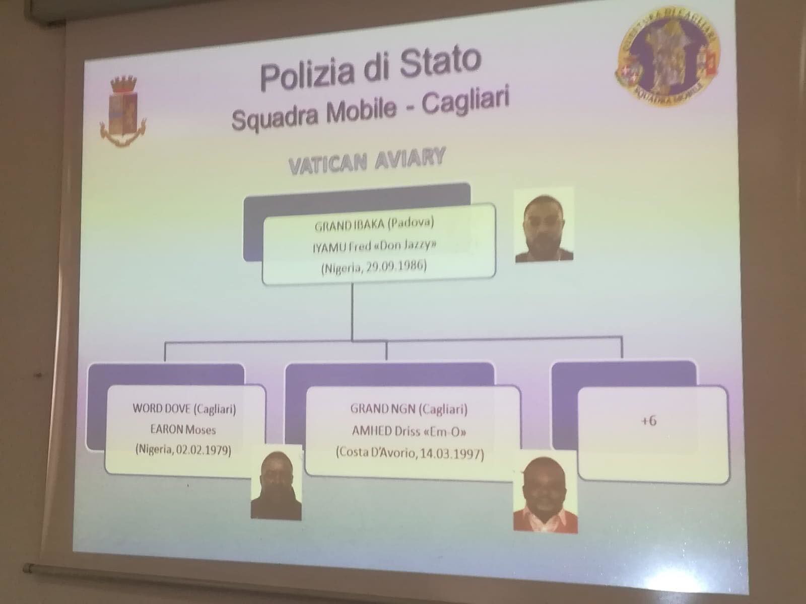 Ahmed Driss, 41enne della Costa D’Avorio, Eimiebo Clemente, 33enne nigeriano, Earon Moses, 39enne nigeriano, Iyamu Obadiaro Richard, 30enne della Nigeria, Lazarus Kenneth Chiejene, 48enne nigeriano residente a Maracalagonis, Okofor Anthony, 20enne nigeriano residente a Jerzu e attualmente rinchiuso nel carcere di Uta, considerato uno dei capi dell’organizzazione, Anthony Isaiah, 25enne nigeriano attualmente rinchiuso a Uta, Jack Williams, 23enne nigeriano, Stefania Schiappa, 48enne di Quartu Sant’Elena e attualmente in carcere, Onaghise Samuel, 43enne nigeriano, Charles Henry di 34 anni, Okamigbo Chigozie di 35 anni, Iyamu Fred, 32enne nigeriano residente a Padova, la 44enne nigeriana Enogieru Loveth, residente a Decimomannu e Ehimwenma Edith 27enne che vive a Decimomannu.