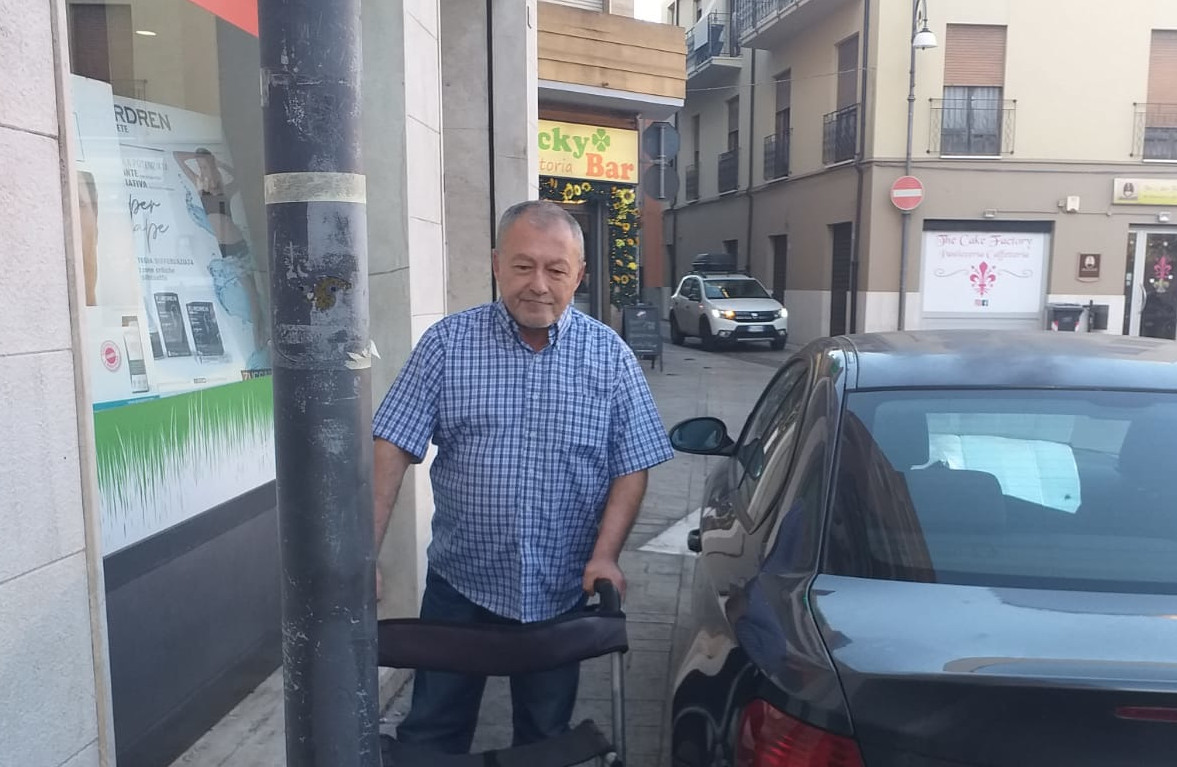 Ha scattato le foto da due diverse prospettive. La prima quando era seduto sulla sua carrozzina, mentre per la seconda ha chiesto la cortesia ad un amico di immortalarlo mentre, con un deambulatore che gli impedisce di cadere, prova a superare una strettoia creata da un lampione e da un’auto parcheggiata decisamente male. Carlo Loi, 62enne malato di sclerosi multipla, ha deciso di raccontare pubblicamente la sua quotidiana odissea. Poche centinaia di metri da fare, dalla sua abitazione alla zona del mercato civico, per fare la spesa, simili ad un campo minato: “Pali di lampioni messi sui marciapiedi o accanto a macchine parcheggiate quasi attaccate al muro, gradini di negozi che rendono impossibile il passaggio per chi ha una disabilità”. Sa molto bene cosa voglia dire essere disabile, il sessantaduenne: “La sclerosi multipla mi fa compagnia da 33 anni e, negli ultimi dodici, sto peggiorando giorno dopo giorno”, ammette l’uomo, costretto a lasciare il lavoro prima del tempo per potersi curare e sfruttare a dovere un prepensionamento.