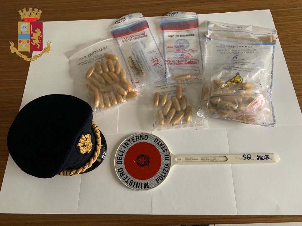 Nelle fasi del controllo documentale lo straniero ha accusato un lieve malore. I poliziotti, insospettitisi, intuendo che potesse avere ingerito degli ovuli, lo hanno accompagnato in ospedale, dove è stato sottoposto ad una radiografia a seguito della quale si è appurata la presenza nel corpo di una settantina di ovuli contenenti, ciascuno, circa 15 grammi di cocaina, per un totale di circa un chilogrammo di cocaina. La droga, una volta tagliata e immessa nel mercato, avrebbe fruttato oltre 150.000 euro.