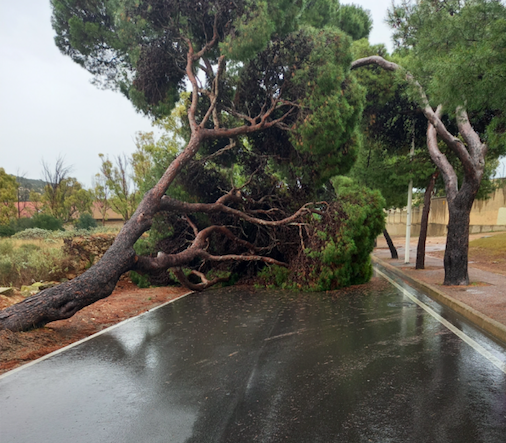 Maltempo a Cagliari, crolla un albero a Calamosca: strada bloccata.