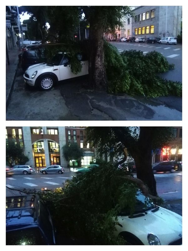 Continuano intanto le segnalazioni di grossi alberi abbattuti dal vento in varie zone della città e dell’hinterland.