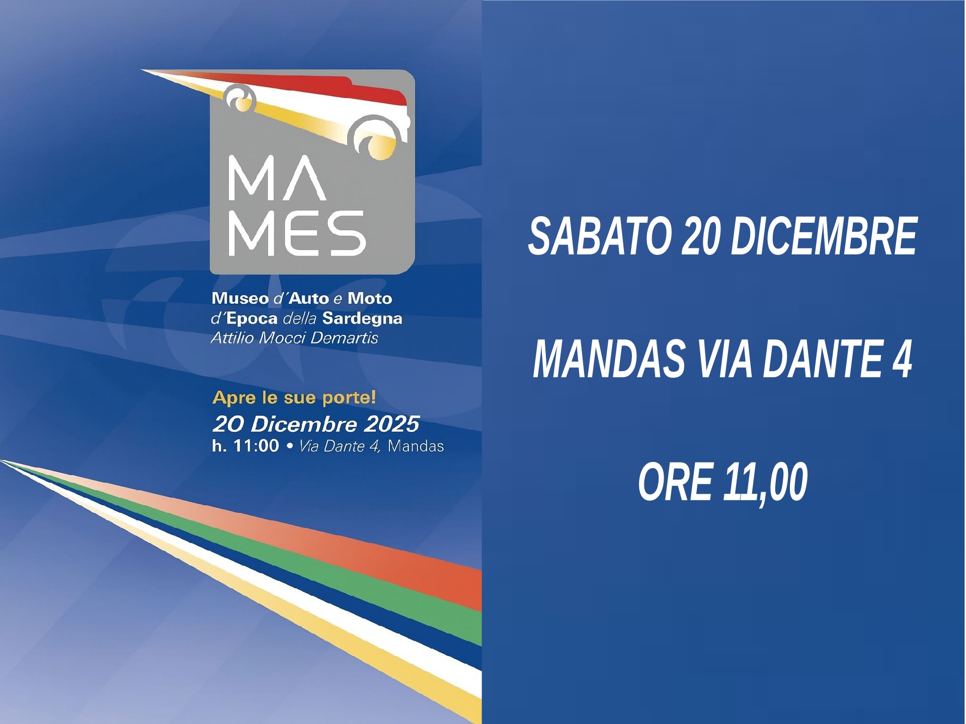 Nasce così a Mandas “MAMES”, il primo Museo d’Auto e Moto d’epoca della Sardegna, dove la storia dell’isola incontra la storia del motore, un percorso che racconta l’arrivo dell’automobile in Sardegna e l’evoluzione della mobilità nel Novecento .