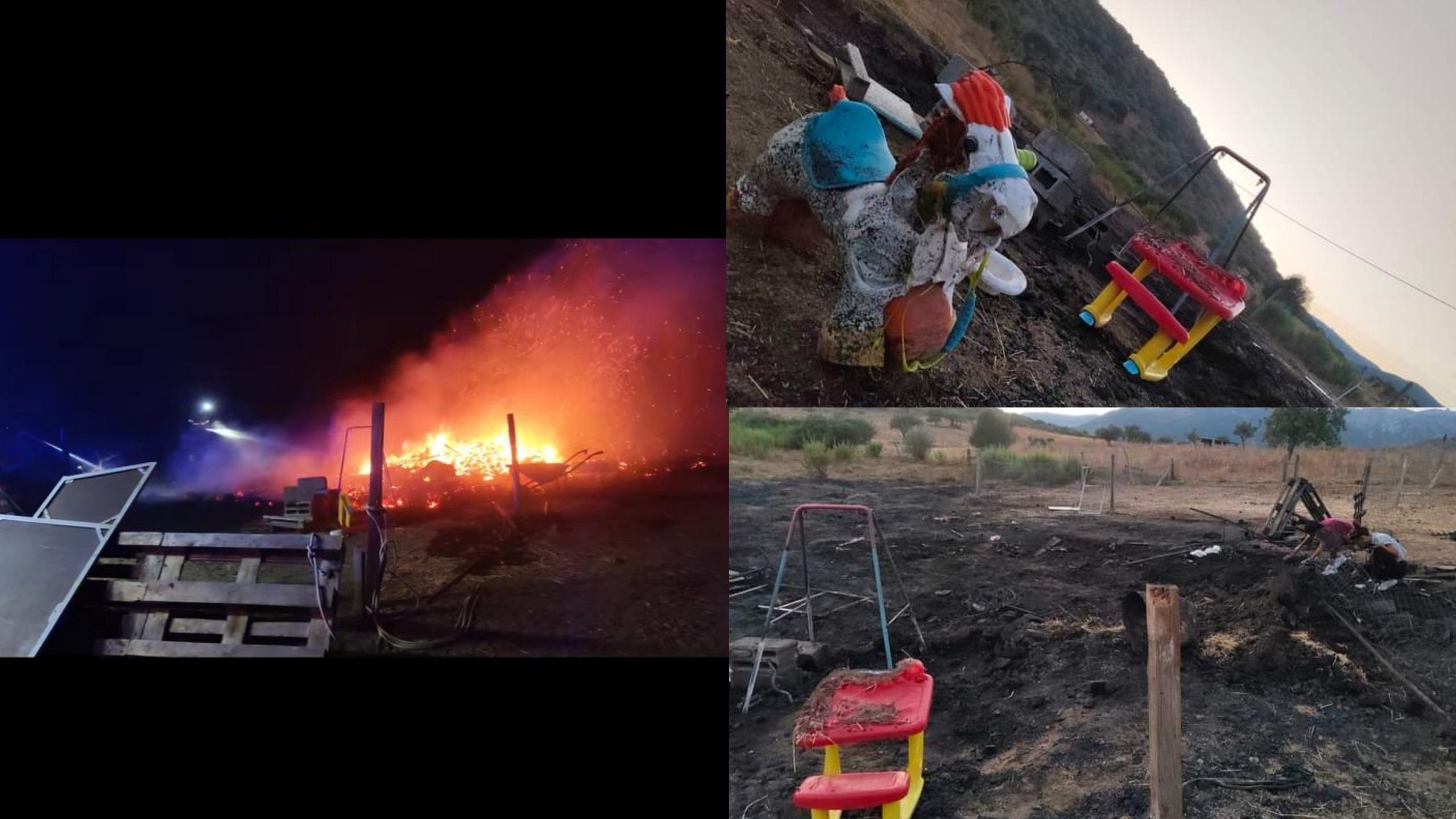 Berchidda – Maneggio distrutto dalle fiamme, salvati i cavalli grazie all’aiuto dei volontari, il cane di famiglia, invece, non ce l’ha fatta. La proprietaria: “Abbiamo perso tutto”. Un atto doloso, da quello che si apprende, un luogo dove i bambini potevano giocare con gli animali: non c’è più niente, tutto incenerito. Il rogo, partito durante la notte di un giorno fa, è stato raccontato pubblicamente dalla proprietaria, Denise Berria: “Questo è quello che rimane di anni di sacrifici …un incendio doloso ..i giochi dei bambini le selle e tutto il materiale per poter fare un lavoretto extra e poter guadagnare qualcosa ..costruendo un qualcosa per tutti non solo per noi …ringrazio le persone che sono corse per salvare i cavalli( che stanno tutti bene ) ma che non sono riuscite a salvare il nostro cane..abbiamo perso tutto…c’è chi godrà di questo..sicuramente…ma ci rialzeremo ammaccati ma più forti di prima grazie a chi ci ha aiutati a spegnere il tutto..e a chi è rimasto ad asciugare le lacrime che non finiranno mai di scendere…perché abbiamo perso una amica fedele oltre ai sacrifici di chi voleva solo lavorare in onestà..”.