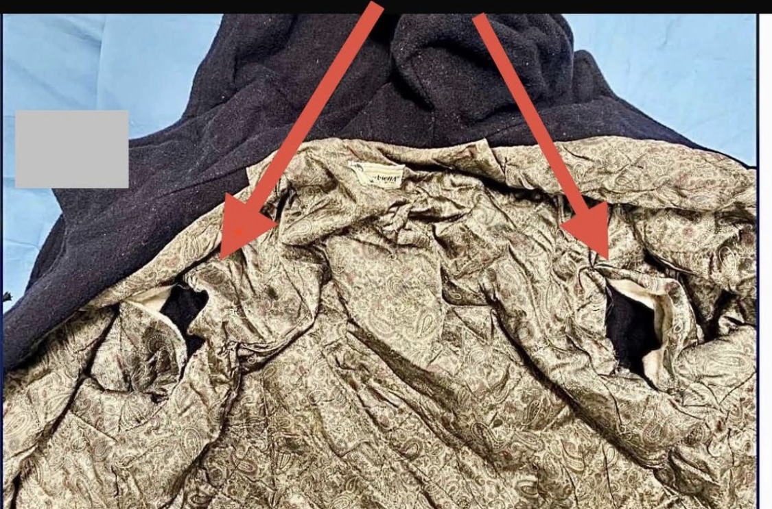 Sempre casualmente, nel cappotto sono presenti due tracce sul bavero sinistro e destro e sui polsi sinistro e destro.