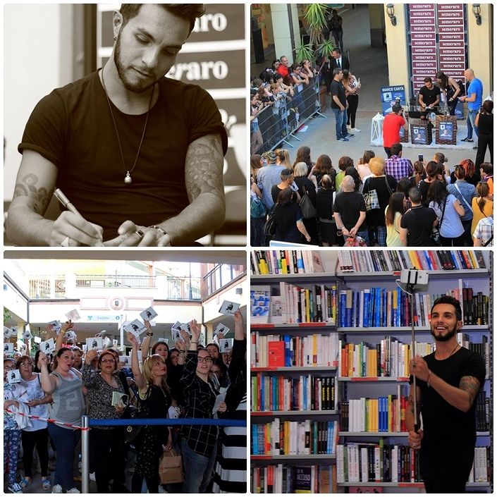 Marco Carta ha incontrato i suoi fan alla Libreria Mondadori di Sestu (Corte del Sole). In tantissimi hanno atteso l’artista, reduce dalla parentesi televisiva all’Isola dei Famosi, per il firma copie del suo nuovo album “Come il mondo” Warner Music. L’ultimo CD di inediti, anticipato dal singolo “Non so più amare”, del cantante cagliaritano è uscito il 27 Maggio ed è stato da subito in testa alle classifiche. Si è trattato per lui del terzo ed ultimo instore in Sardegna e, nonostante l’evidente stanchezza, è stato fin da subito molto disponibile con tutti i suoi fans, perlopiù adolescenti e mamme con bambini. Come sua abitudine si è immerso nella folla registrando con il cellulare i suoi fan urlanti ed emozionati. Accompagnato dalla zia Sabrina, Marco ha regalato tanti sorrisi ed emozioni ai suoi sostenitori grandi e piccoli. Durante la serata Marco ha inoltre incontrato gli atleti della Polisportiva Olimpia Onlus, in un momento di grande allegria e spensieratezza si è divertito a scherzare con loro e ha consigliato a tutti i genitori di far fare tanta attività sportiva ai figli. (Foto di Sara Carboni)