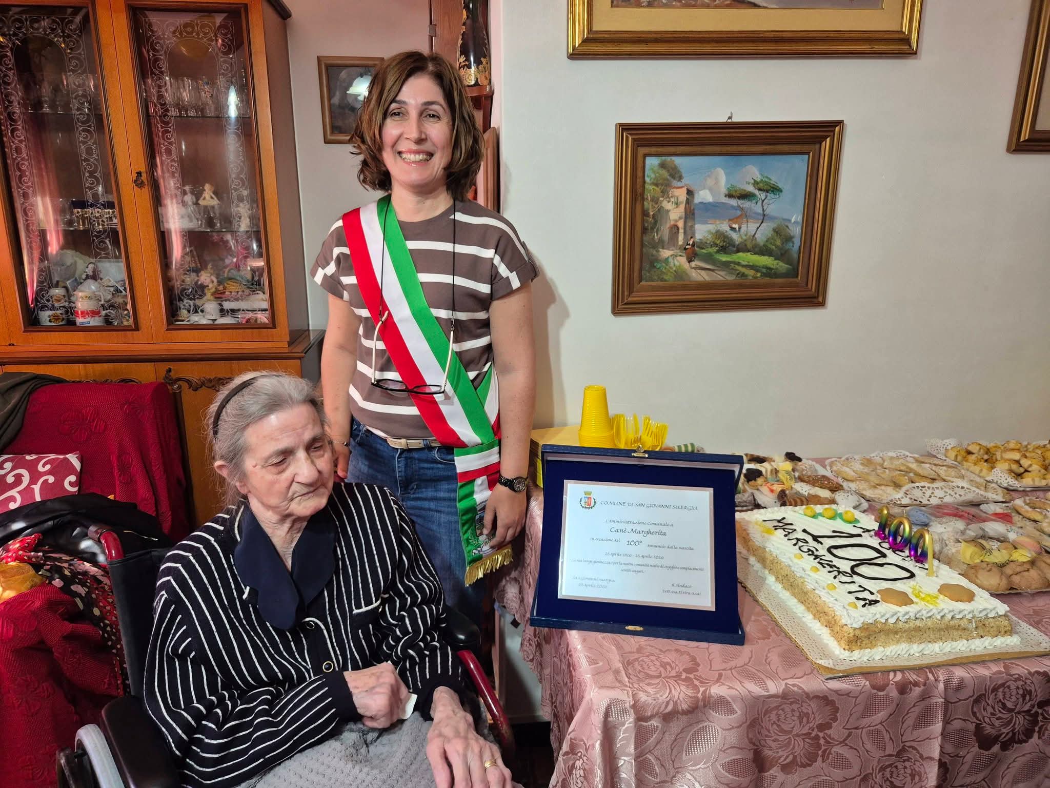 Il secolo di vita lo ha raggiunto proprio il 25 Aprile, giorno in cui si celebra la Festa della Liberazione d’Italia. Circondata dalla sua numerosa famiglia, Margherita ha ricevuto anche gli auguri speciali della Sindaca Elvira Usai che a nome della sua amministrazione e dell’intera comunità le ha donato una targa ricordo per questo compleanno speciale.