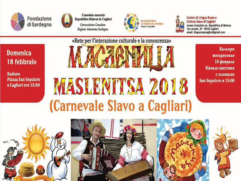 Domenica 18 febbraio “Maslenitsa”, il Carnevale slavo per le vie della Marina. Tradizioni che si incontrano nel segno della conoscenza reciproca, la comunità immigrata proveniente dai paesi dell’Europa orientale, condividerà con città di Cagliari l’antica tradizione chiamata “Maslenitsa”. L’iniziativa si tiene nell’ambito del progetto “Rete per l’interazione culturale e la conoscenza” dell’associazione “Cittadini del mondo Onlus”–biblioteca “Rodnoe Slovo” – Centro di lingua russa e cultura slava di Cagliari. Con il contributo della Fondazione di Sardegna, e il patrocinio del Consolato onorario Repubblica Belarus in Cagliari. La location sarà il quartiere della Marina, dove, nell’oratorio di Sant’Eulalia, da ormai tanti anni ha la sua sede il centro di aggregazione e biblioteca “Rodnoe Slovo”, punto di riferimento per la comunità immigrata e per gli amanti della cultura slava.