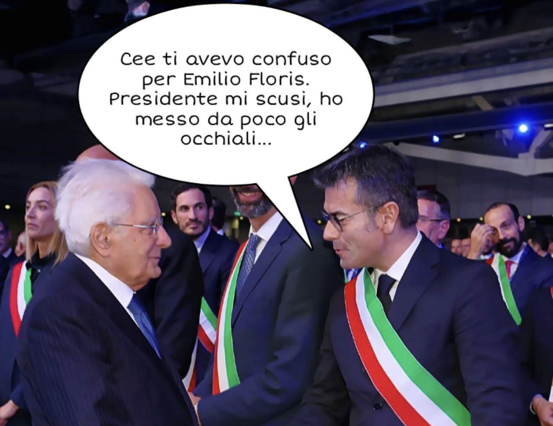 Spopola in rete una foto satirica del sindaco che a causa della novità degli occhiali da vista, confonde il Presidente Mattarella con l’ex sindaco di Cagliari Emilio Floris. È stavolta solo un’occasione per un sorriso senza alcuna nota polemica.