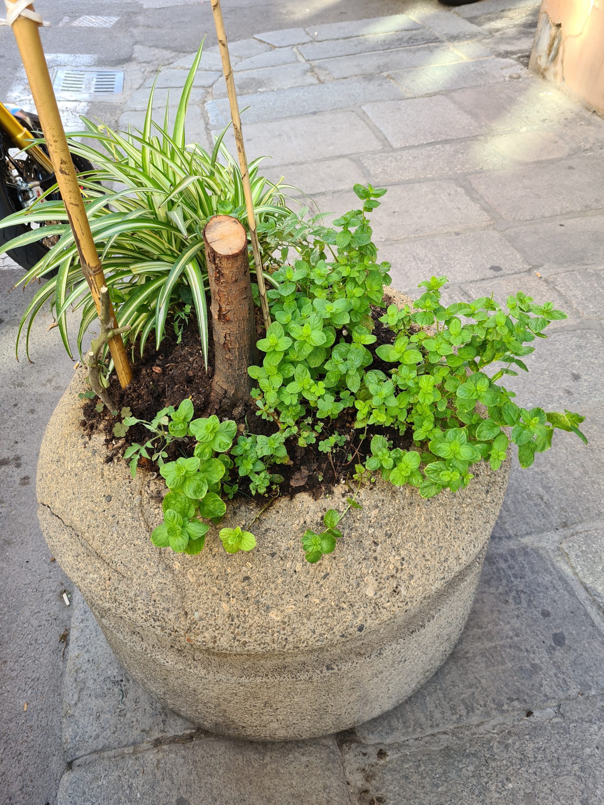 Maturati, raccolti e mangiati i pomodori ” a zucchina” coltivati nella fioriera del Corso angolo Via Tigellio, adesso fiorisce rigogliosa ” la mentuccia “, il noto ingrediente orticolo aromatizzante , utilizzato nelle cucine domestiche e nei ristoranti per cucinare la ” trippa ” e il “mojito” . Una raccomandazione : andate ad ammirare la coltivazione ma non portate via la ” mentuccia”:!!!