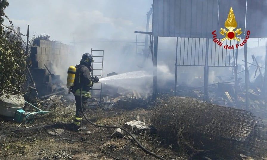 Vasto incendio all’interno di un terreno privato vicino alla Ss 554 a Selargius, in fiamme masserizie e carcasse d’auto. Sul posto, dopo varie segnalazioni al 115, stanno intervenendo in forze i Vigili del fuoco con molte squadre di pronto intervento. In cenere anche cespugli e arbusti.I pompieri sono ancora al lavoro e, tra le fiamme, hanno anche trovato alcune bombole di Gpl, portate subito via e raffreddate. In azione un’autopompa, due autobotti, un autofurgone autorespiratori e il nucleo investigativo antincendi territoriale del Niat per accertamenti e rilievi. Al termine delle operazioni di spegnimento e bonifica tutta l’area sarà messa in sicurezza. Sul posto anche i carabinieri, gli agenti della polizia Locale di Selargius e gli uomini del Corpo Forestale regionale. Le cause del rogo sono in fase di accertamento da parte del personale dei Vigili del fuoco.