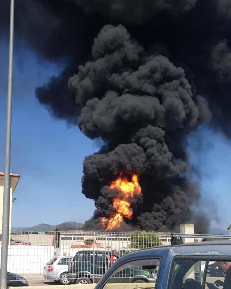 Grande incendio a Tortolì, fiamme nella zona industriale, in un capannone pieno di materiale edile. Il rogo, scoppiato per cause ancora da accertare, è ben visibile anche da chi si trova a svariati chilometri di distanza, anche e soprattutto per via della mega nube nera che sta avvolgendo gran parte del cento ogliastrino. In azione da un’ora i Vigili del fuoco, le operazioni di spegnimento sarebbero rese più complicate del previsto a causa del grande caldo.