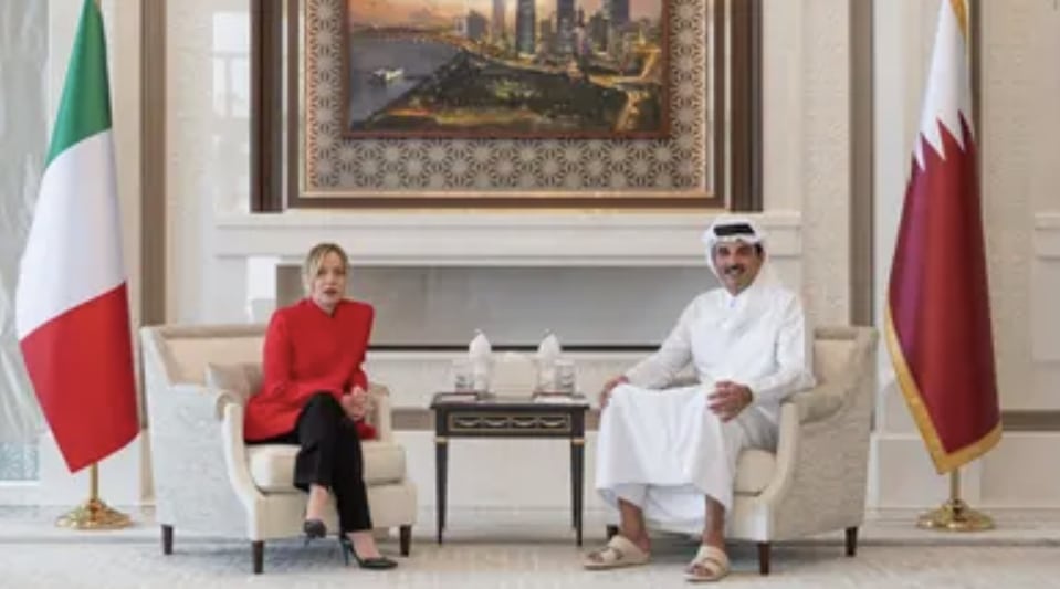 Giorgia Meloni si è recata in visita in Arabia Saudita, Qatar ed Emirati pr discutere la delicata situazione dei rifornimenti energetici a seguito dalla guerra in Iran e la chiusura dello Stretto di Hormuz.