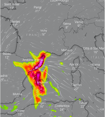 Temporali di forte intensità sono in atto sul mare delle Baleari.