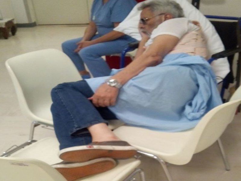 Ha subìto un intervento alla schiena il 25 giugno per una “frattura chiusa della colonna vertebrale”. Tutto è andato bene e poi, per Giuseppe Cossu Berte è iniziata la trafila delle visite di controllo. Ed è a questo punto che, stando al racconto della figlia Francesca, qualcosa è andato storto. Ieri, visita prenotata all’ospedale di Nuoro: “Aveva già fatto un controllo qualche giorno dopo l’intervento per le due vertebre fratturate. Mio padre è cardiopatico, è arrivato con mia sorella al San Francesco alle 8:45. I medici hanno subito svolto il controllo della lastra alla schiena”. Poi, l’attesa per la visita è diventata un incubo: “Mia sorella l’ha portato in Neurochirurgia, lui cammina con le stampelle ed era riuscito ad avere una sedia a rotelle perchè, dopo l’intervento, deambula male”. E l’altra figlia, su Facebook, racconta che “ci è stato detto che tutti i medici erano in sala operatoria per degli interventi programmati. Abbiamo atteso ben 5 ore e 30 buttati nella sala d’aspetto, ho chiesto ripetutamente alle infermiere di darmi un lettino o una brandina per papà che ormai era sull’orlo di uno svenimento, ma niente. Ho ottenuto un cuscino e allora ho dovuto creare un giaciglio con carrozzina e sedie perché stava scivolando”.