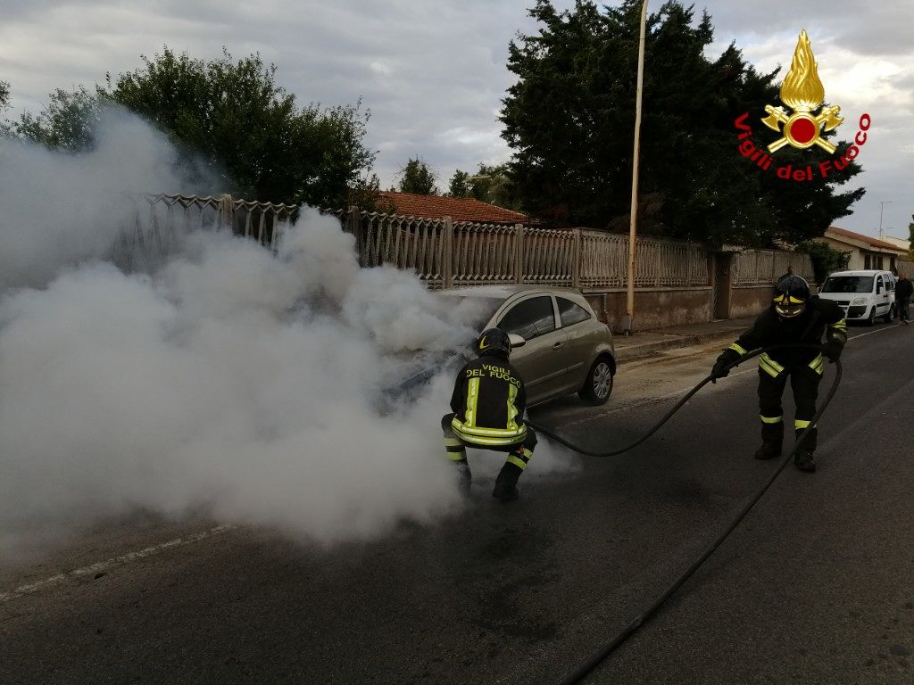 Incendio di un’autovettura in transito lungo il viale Leonardo Da Vinci a Quartu: i Vigili del Fuoco hanno spento le fiamme ed evitato il coinvolgimento dell’intero veicolo.