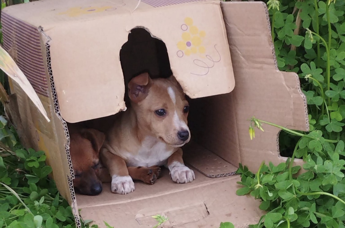 Due cuccioli piccoli e indifesi rinvenuti dentro una scatola di cartone chiusa e abbandonata a ridosso del canale di Monastir: per fortuna la sorte ha fatto in modo che una cittadina trovasse i cagnolini, destinati altrimenti a morte certa.