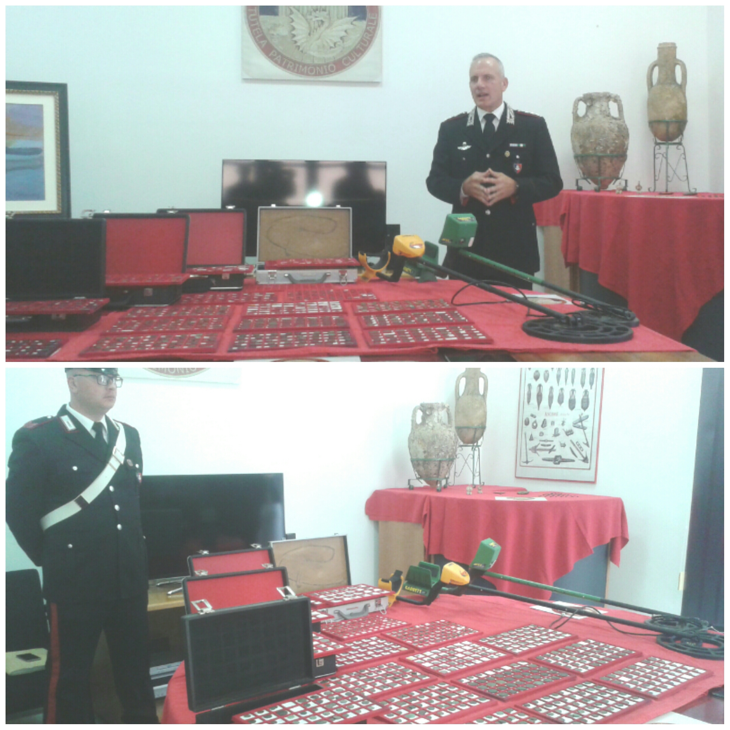 Duemila trecento monete d’oro, argento e di epoca romana e fenicio punica in oro, argento e bronzo, due metal detector e due persone un 40enne e un 50enne dell’Iglesiente denunciate alla Procura della Repubblica.