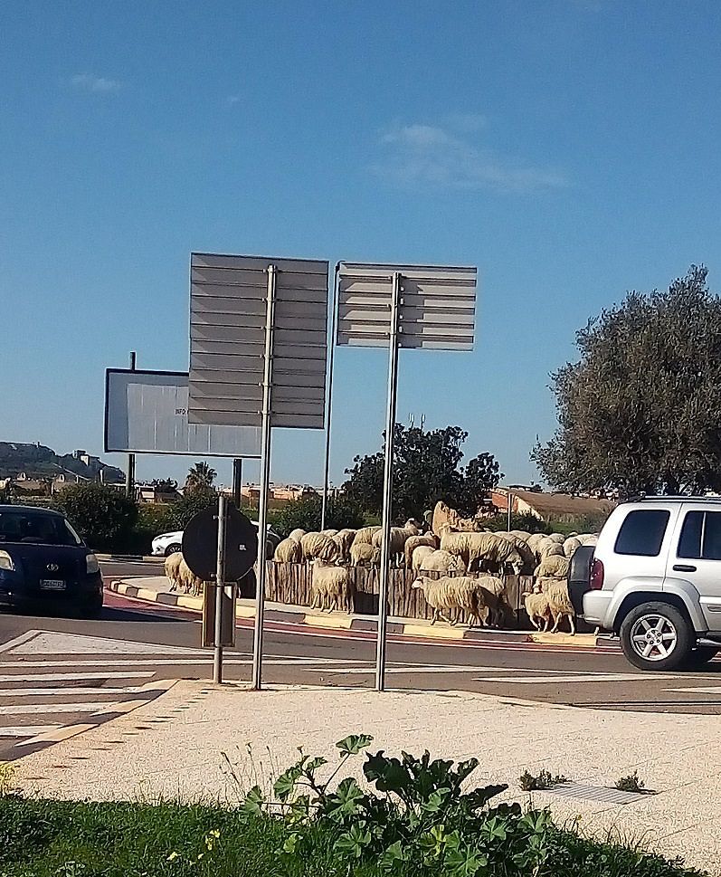 Ancora pecore a spasso nella rotonda e traffico in tilt questa mattina a Monserrato, quasi al confine con Pirri. Pare che il pastore del gregge non sia minimamente preoccupato dell’incolumità dei suo animali e soprattutto degli automobilisti. Perché la scena si ripete. Traffico in tilt, pure il bus è rimasto bloccato dal passaggio delle povere bestie.