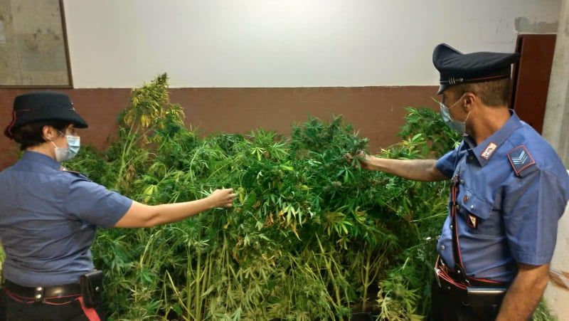 Cento piante di marijuana, una maxi serra, tutte coltivate nel loro appartamento a Monserrato. Una coppia, rispettivamente di 26 e 43 anni, è stata arrestata dai carabinieri, agli ordini del maggiore Valerio Cadeddu. I militari hanno compiuto un blitz nell’abitazione, scoprendo tre stanze dedicate alla coltivazione della cannabis, tutte alte un metro e settanta centimetri. Sequestrato anche materiale vario per la coltivazione e il confezionamento dello stupefacente e un bilancino di precisione. La coppia aveva installato un sistema di irrigazione e di illuminazione, ventilazione e climatizzazione artificiali, e si erano allacciati in modo abusivo alla rete elettrica.