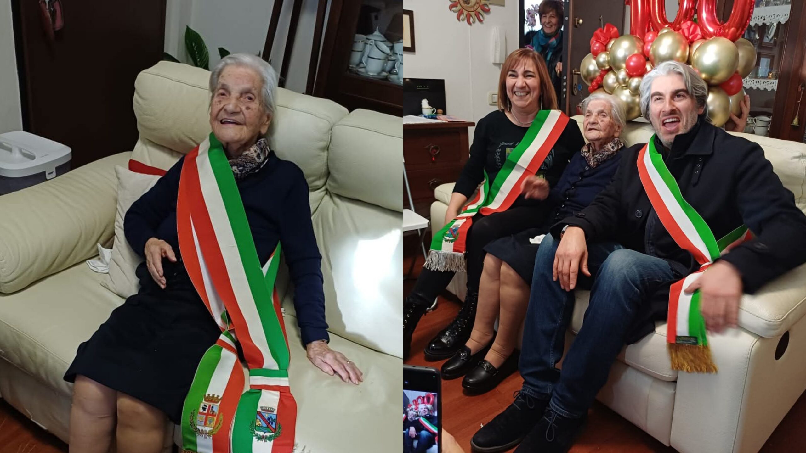 Monserrato, doppia fascia tricolore al petto per la neo centenaria Anna Maria Melosu: gli auguri speciali sono arrivati anche da Sorgino.