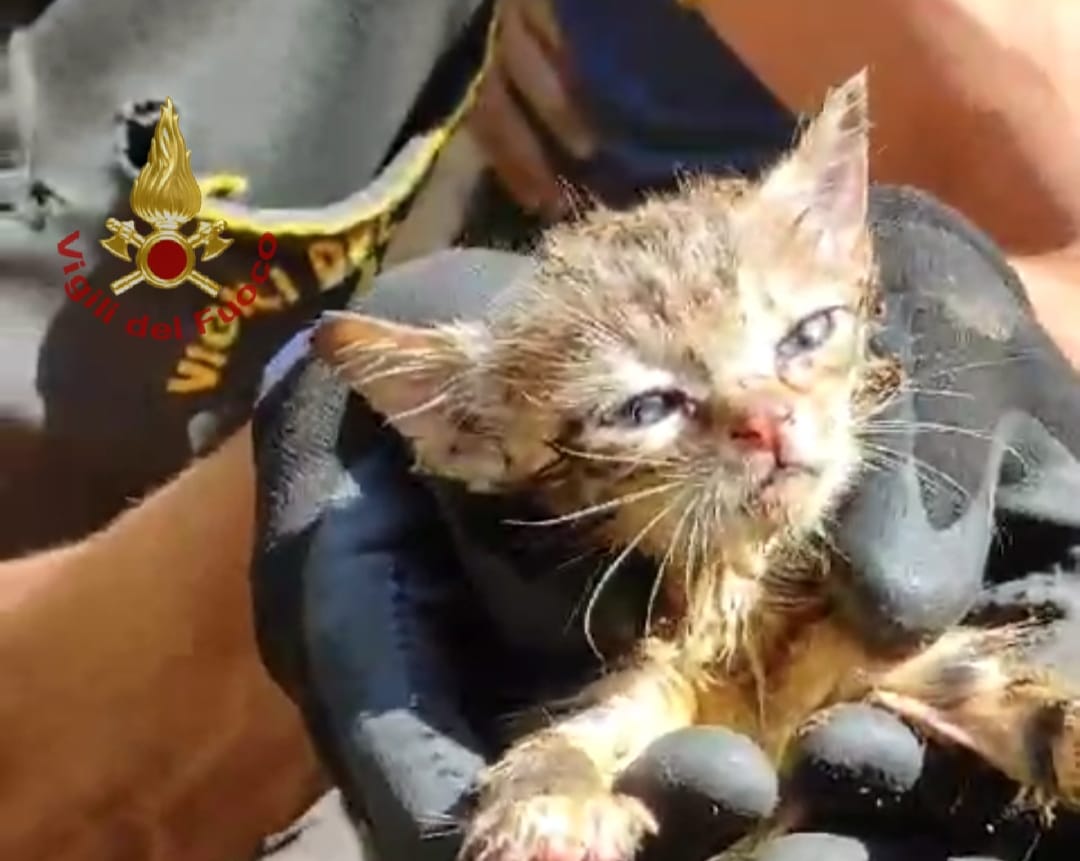 Intervento dei Vigili del fuoco nella mattinata di ieri, a Monserrato, in soccorso di un gattino che si era addentrato nelle tubazioni di scarico delle acque di un’abitazione privata.