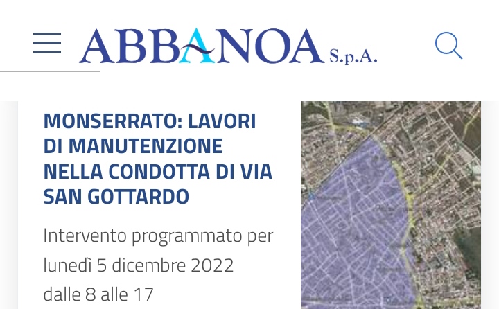 “Già in data 02 dicembre ( data della Comunicazione nel Sito) Abbanoa avvisava dell’interruzione che sarebbe avvenuta oggi.